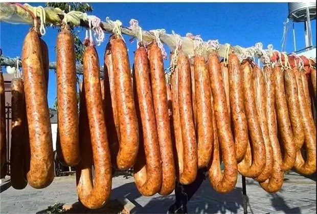 對于紅河人而言,過年,臘肉香腸必須得安排。臘肉香腸選用的都是新鮮的五花肉、后腿肉,加以食用鹽、糖、酒等配料腌制后放進腸中,扎孔、分段系繩,最后晾掛起來。