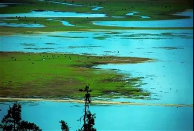 高原季節性天然湖沼,湖水回落時形成依拉草原,是黑頸鶴等候鳥越冬棲息地。